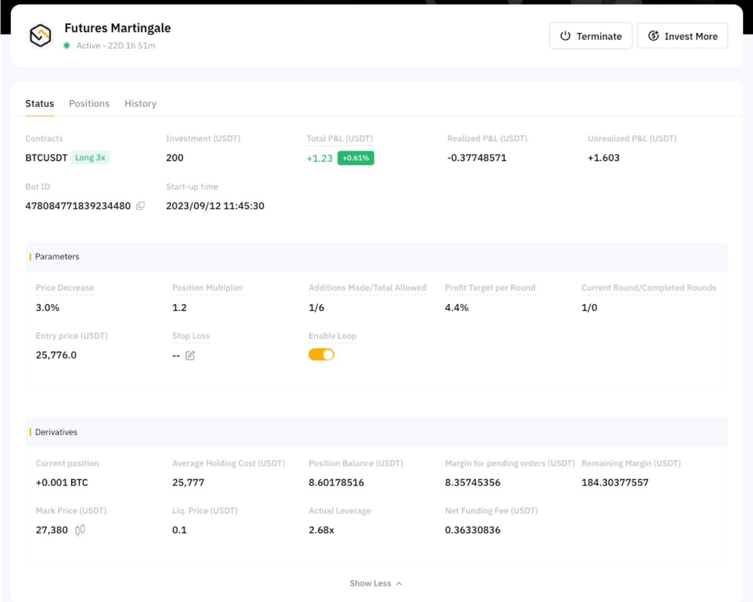 For example, when the Position Multiplier is set to 1.2, the order margin of the new position is equal to the previous opening cost times 1.2.