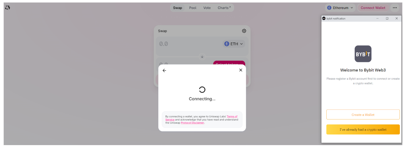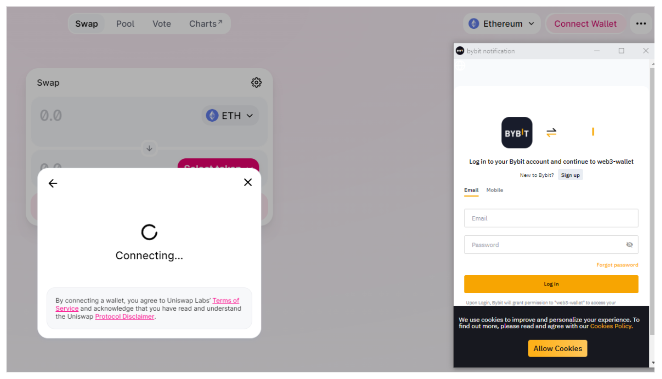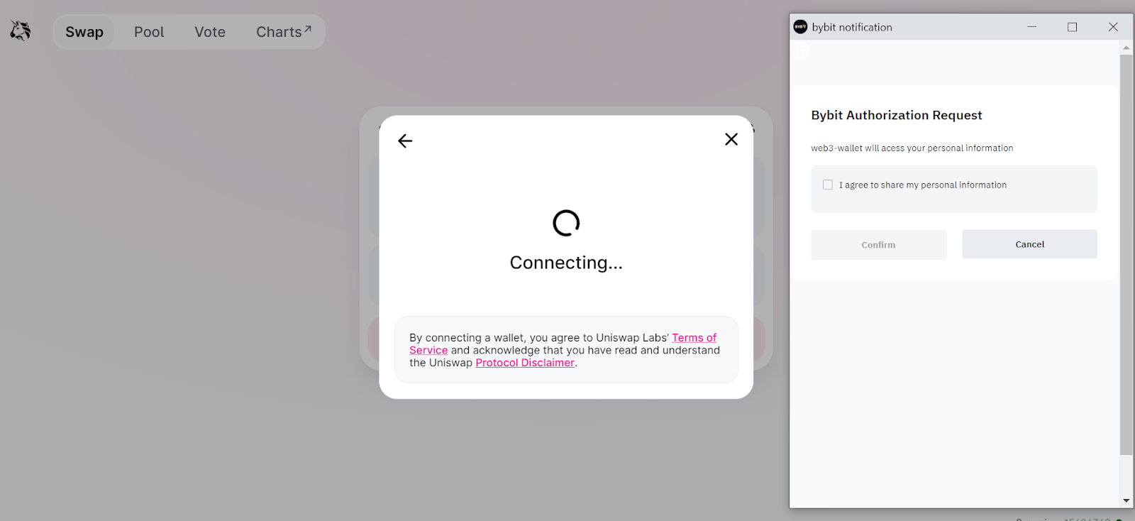 Step 3: Your Bybit Wallet is connecting to Uniswap.