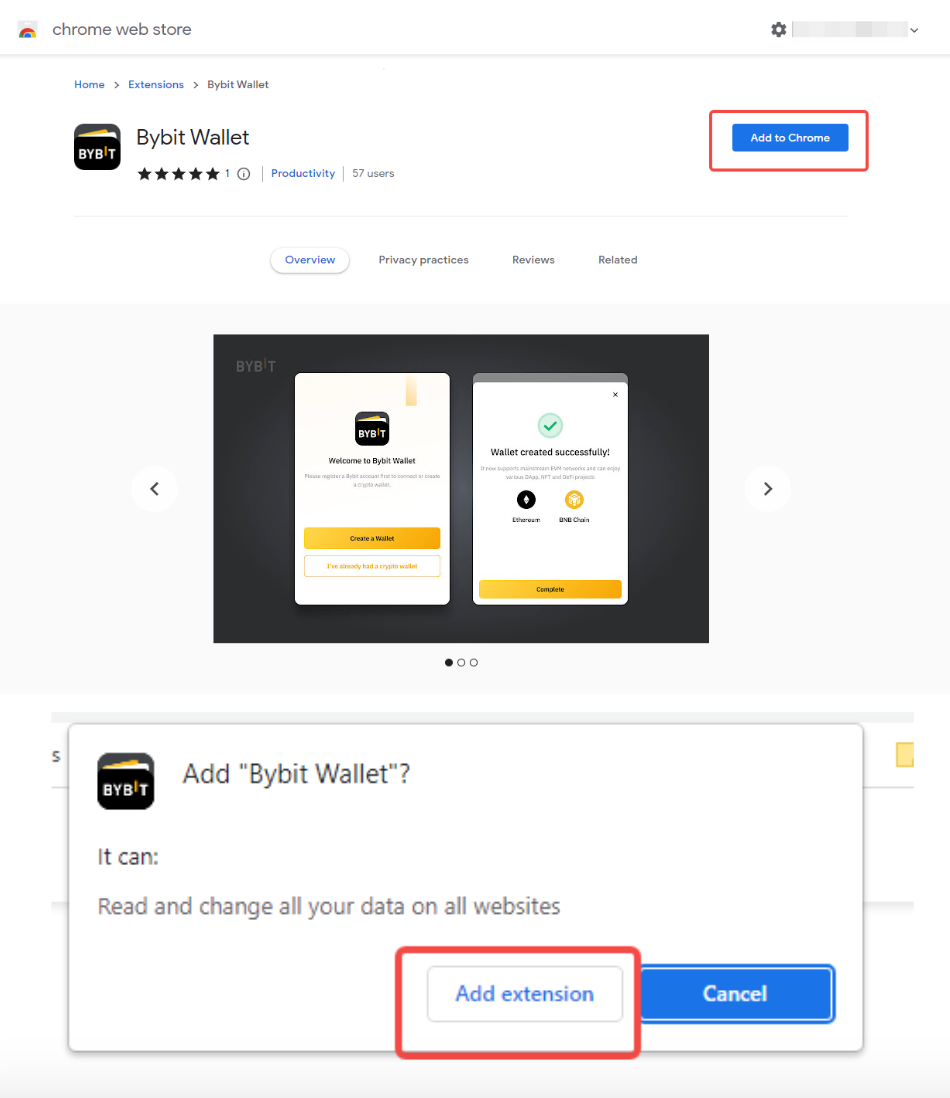 Step 2: Click on Add to Chrome to install the Bybit Wallet extension. Then, tap on Add extension.