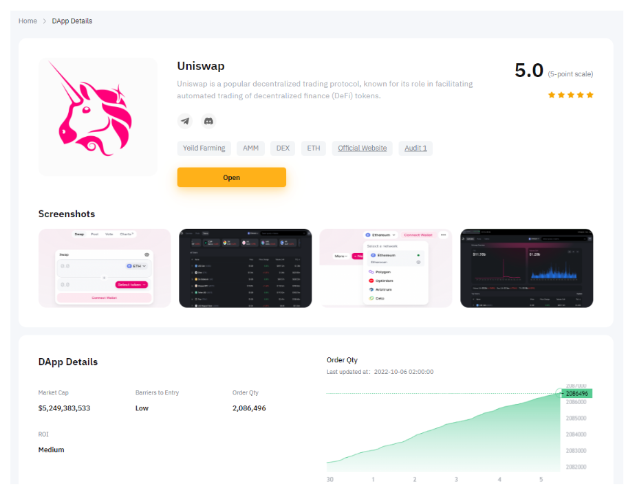 Step 1: Select Uniswap under Featured DApps on the Bybit Wallet homepage to enter the DApp Details page. Then, click on Open to enter the Uniswap interface.