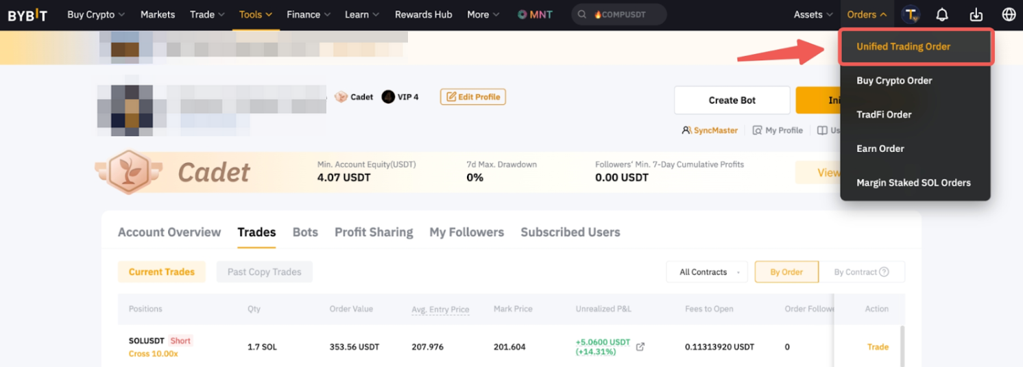 The unrealized P&L on both tabs is calculated based on the average entry price. To view each order history, go to your Unified Trading Order page. For more information, please refer to FAQ — Copy Trading.