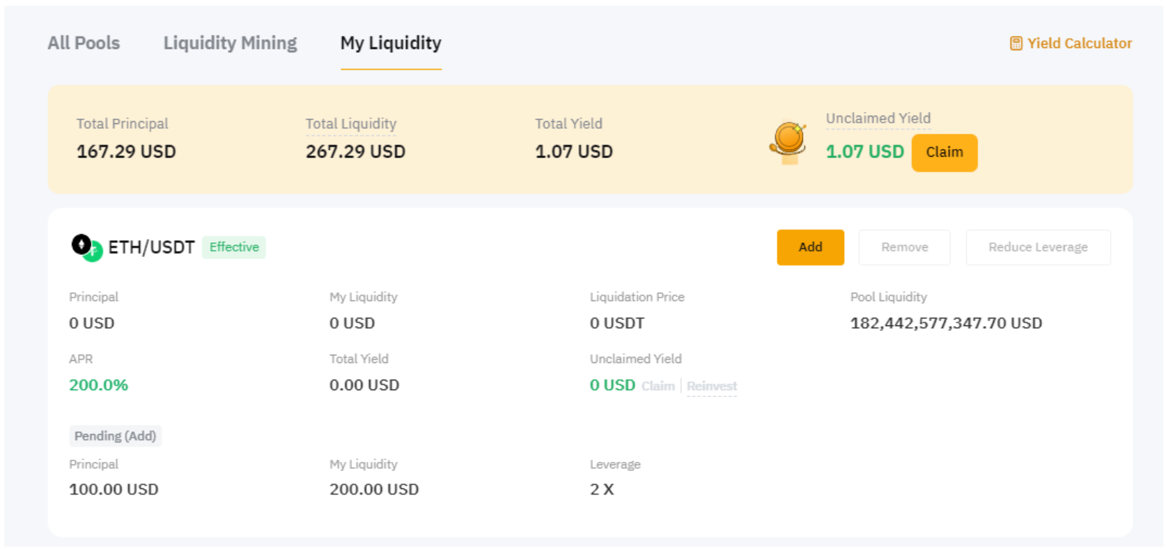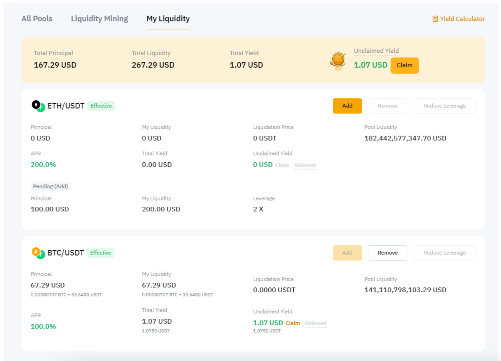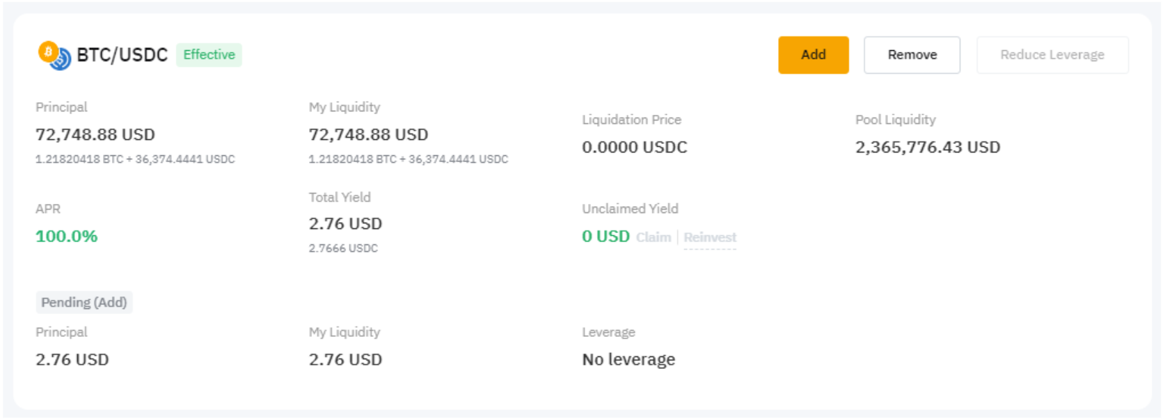 From there, you can easily manage your positions — choose to add more liquidity, remove liquidity, claim and reinvest your yield, as well as reduce the leverage.