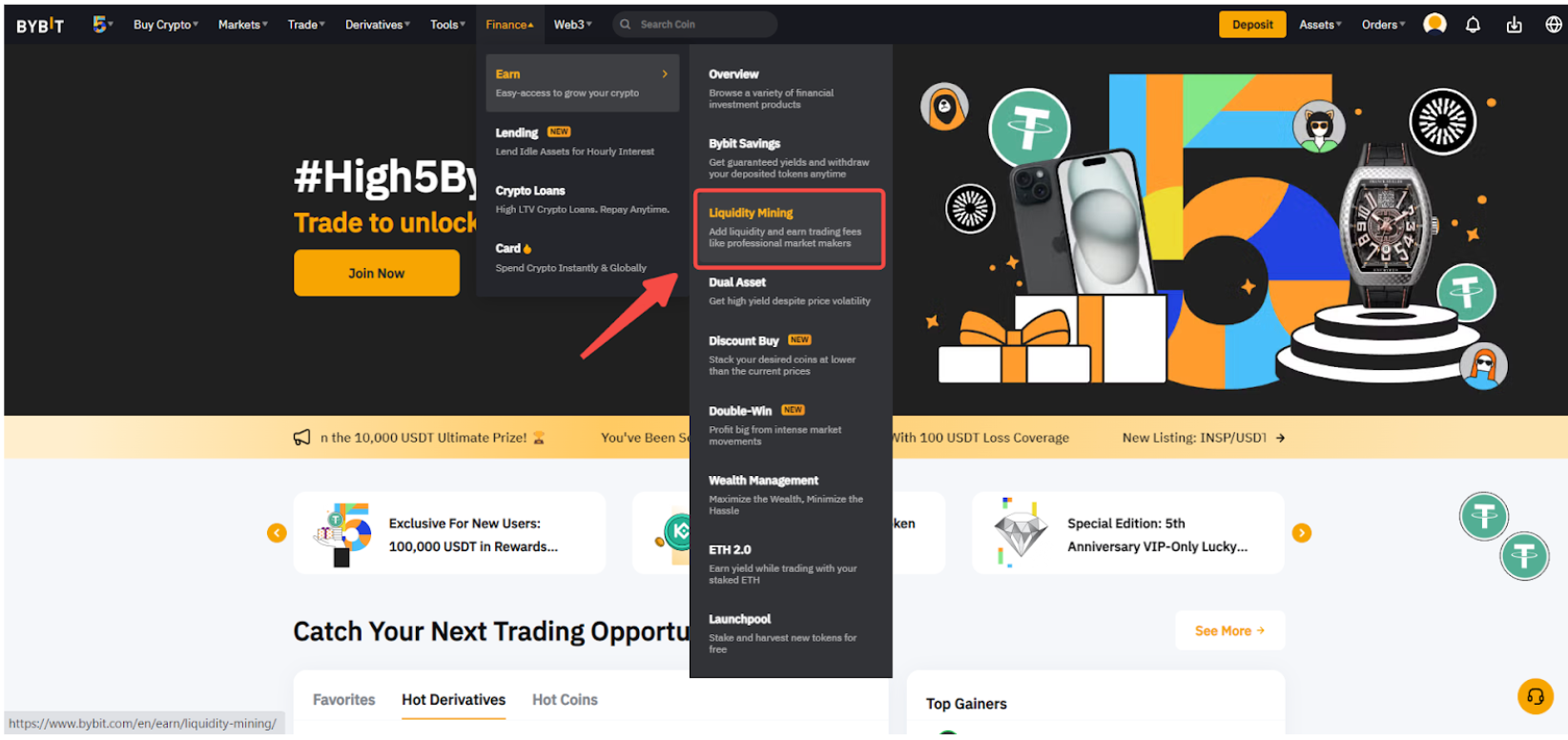 Step 1: Please click on Earn → Liquidity Mining in the navigation bar to enter the Liquidity Mining page.