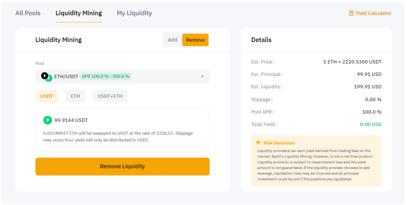 Step 1: Head to the My Liquidity page, and then click on Remove to enter the Remove Liquidity page.