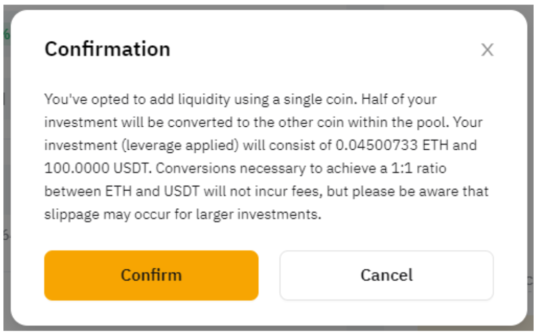 2. (a) Add two tokens to the pool — the system will automatically process conversion to ensure that the two tokens are of equal value when they're added to the liquidity pool, or