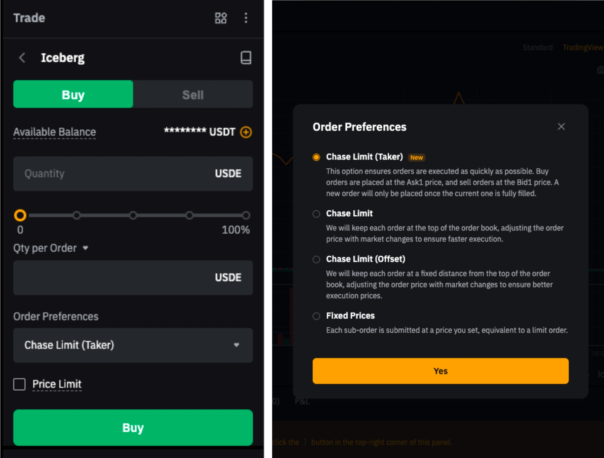 — Only for Chase Limit, Chase Limit (taker), and Chase Limit (offset) order preference allows traders to set a Price Limit.
