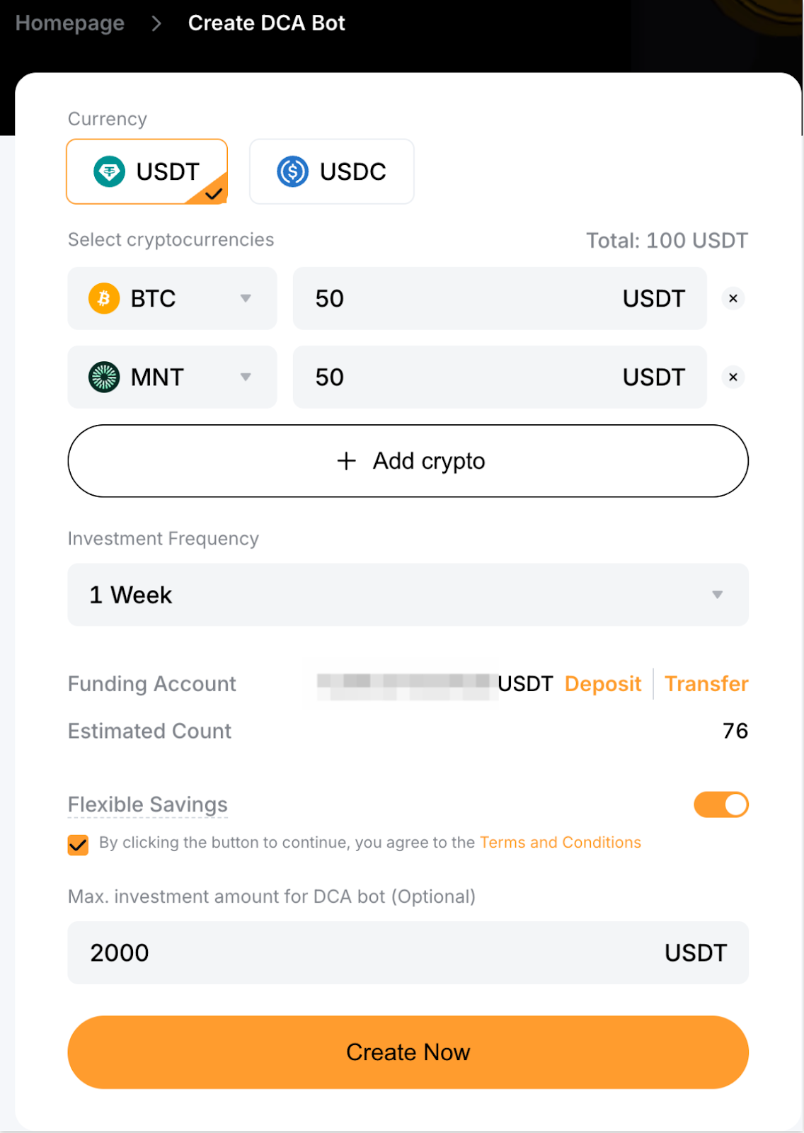 From the above two examples, for the same investment amount, the DCA Bot allows users to accumulate more BTC and MNT. This comparison also excludes any additional yield that may be earned from Flexible Saving.