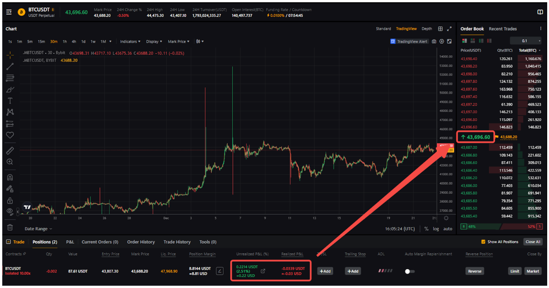 Unrealized P&L = 0.2214 USDT (The positive unrealized P&L inside the image above shows up to 4 decimal places)