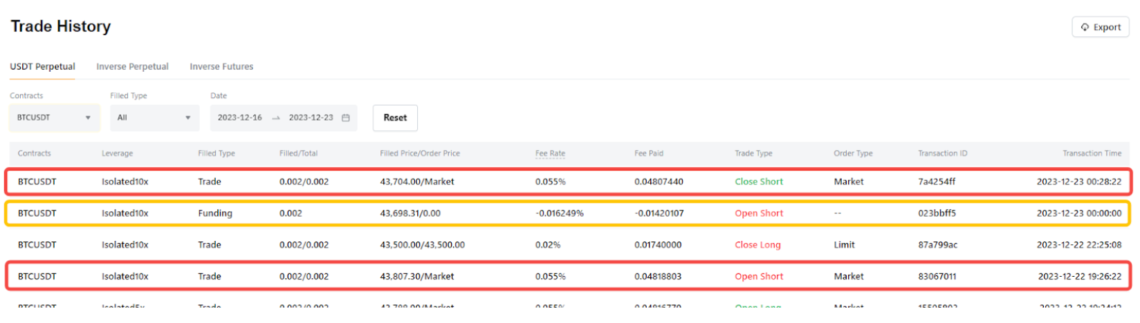2) For Closed orders, it shows the realized P&L of every single closed transaction, including the proportionate transaction and funding fees if it is a partially closed position.